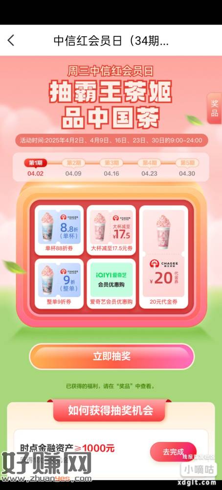 中信,周三红会员日,抽奖活动,有米的老哥可以研究研究
