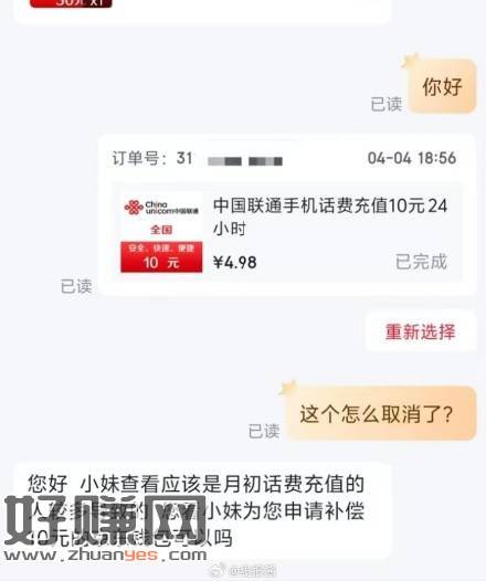 昨天狗东五冲十话费,还是退款了,可以补偿
