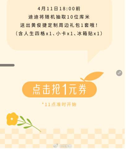 11点,1元库迪
