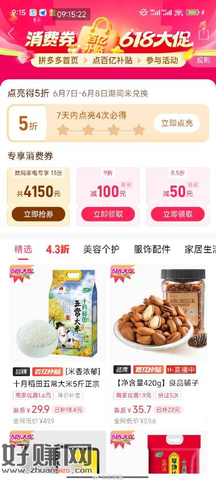 拼多多,百亿补贴进去,百亿消费券,点亮五折又有了