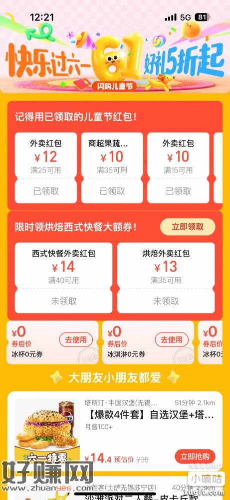 闪购中间横幅儿童节活动 0元冰淇淋和冰杯 需要去