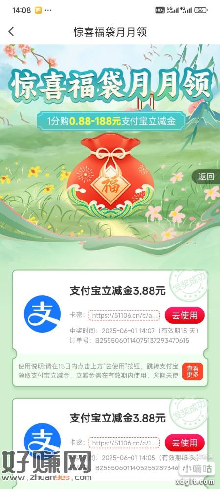 支付宝芝麻粒炼金领2.88-12.3元现金红包