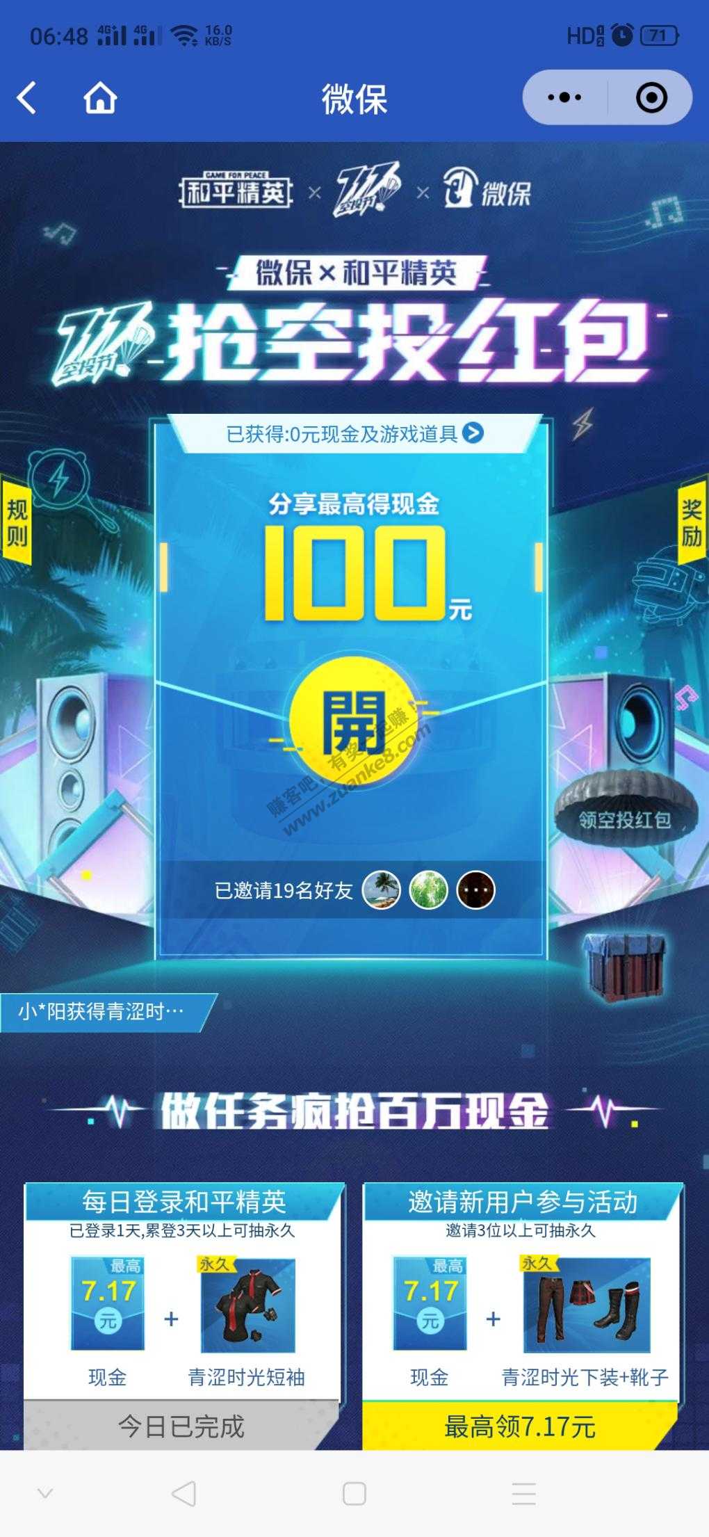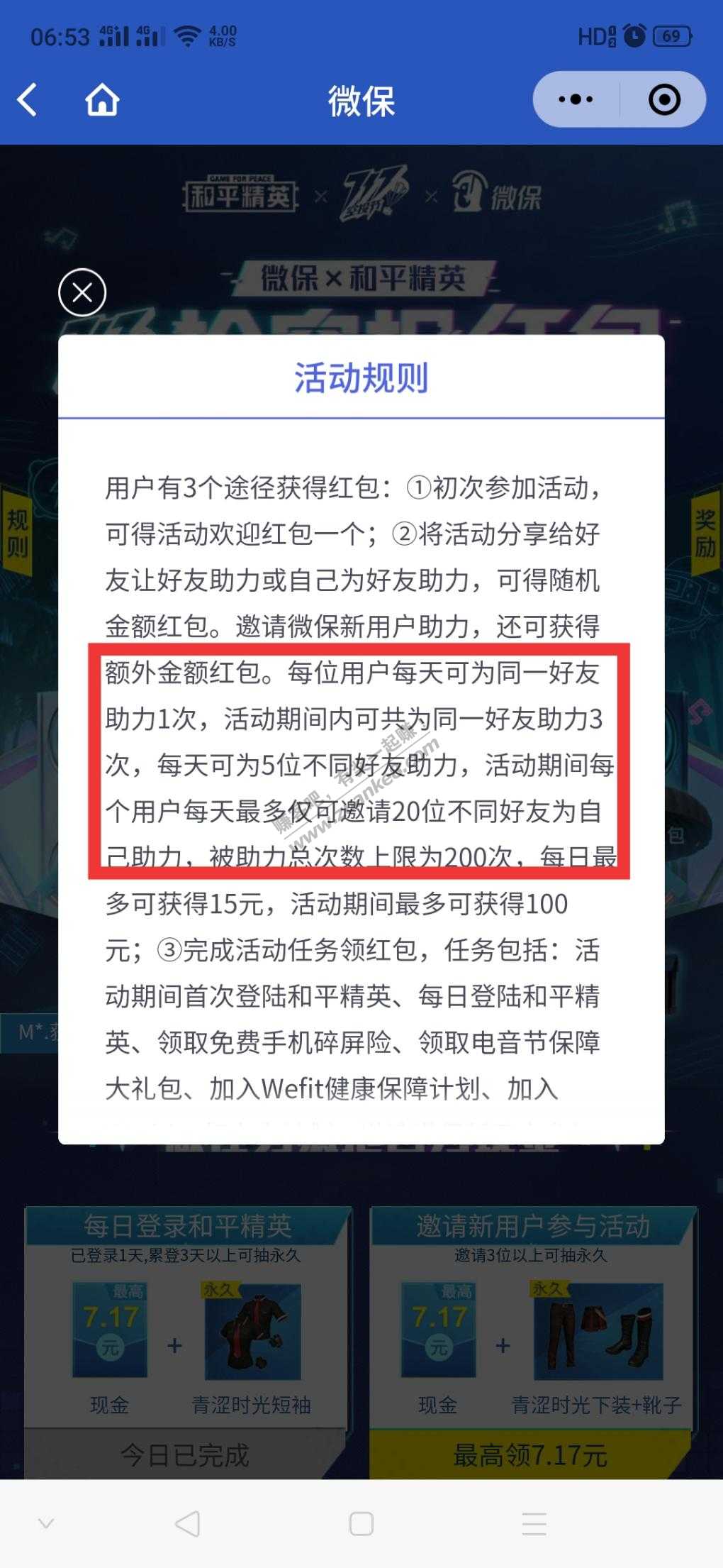 小程序微保,首页横幅即可参加,亲测拉19人助力,外加4个小任务即可到达12元,提现秒到,每人每天只能获取助力20次。