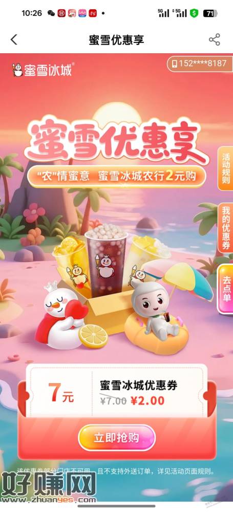 滑动蜜雪优惠享丨有2买7券