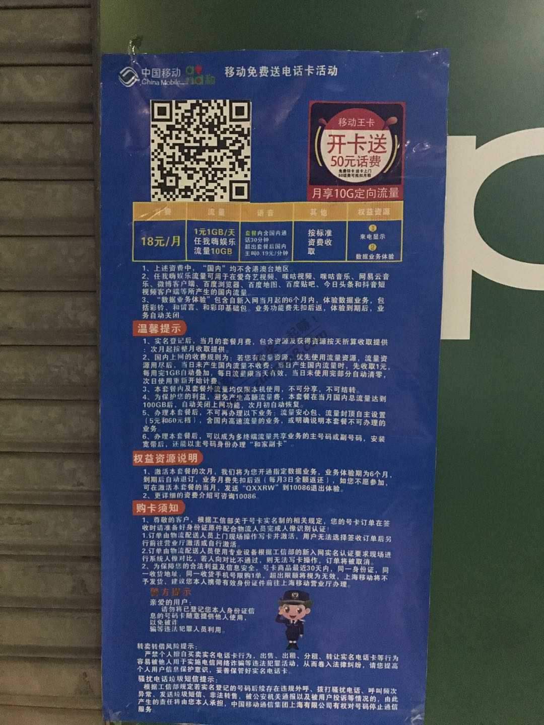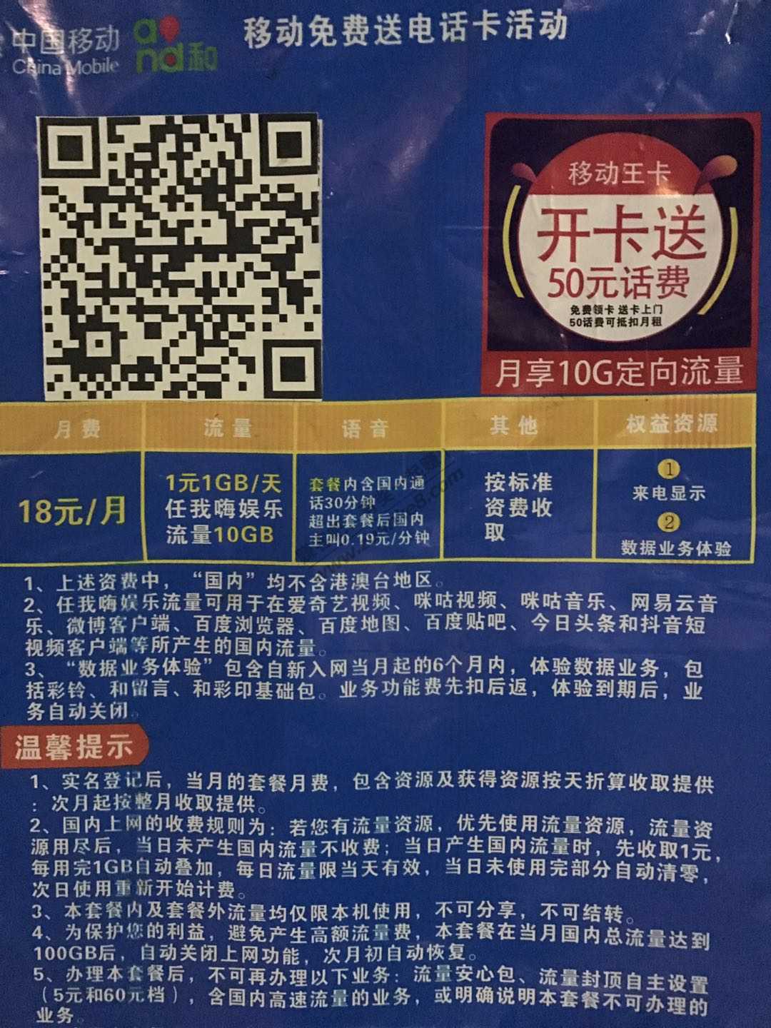 我这边移动营业厅新开张 免费送电话卡 有50话费 可以月租。我领了几张来做活动 玩完就可以注销了了 直接扫码就可以了 那边还不让我拍 我还半夜回来拍一下 我的卡隔天就到了 速度好快 已经点了几个新用户外卖 注册了一堆号 还能随便到一家营业厅就注销了 贼方便 速领 大半夜给你们拍 真累人
