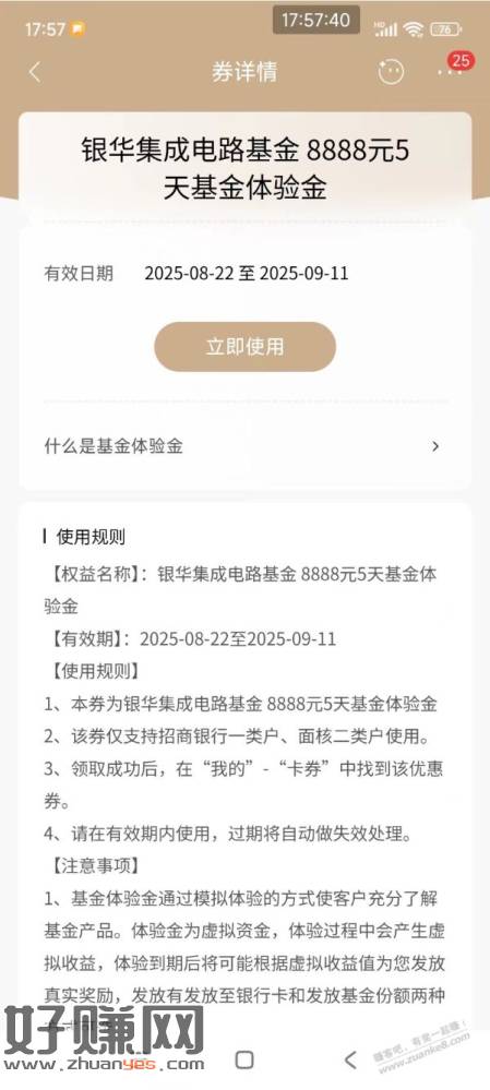 [ 招商银行 ]银华基金体验金8888元,黑号也能领~