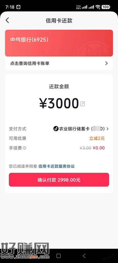抖音还款3000-2农行
