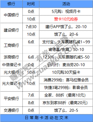 7月28号周二 各大银行活动优惠