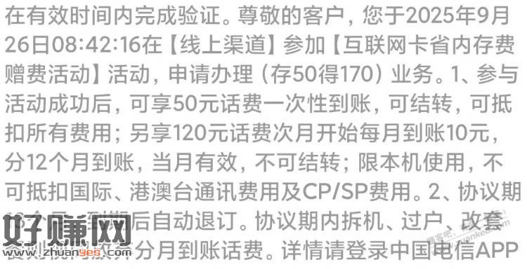 湖北电信APP搜:存费 可以50送120,自测