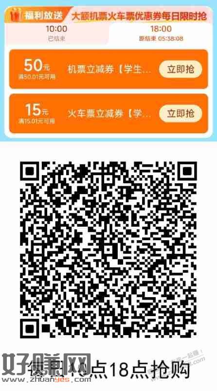 即日起至9月30日每日投放50元机票立减券和15元火车票立减券,