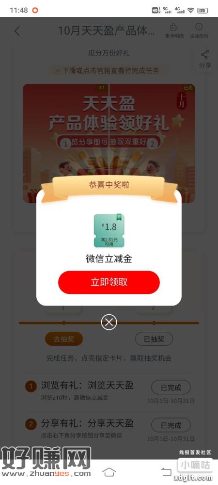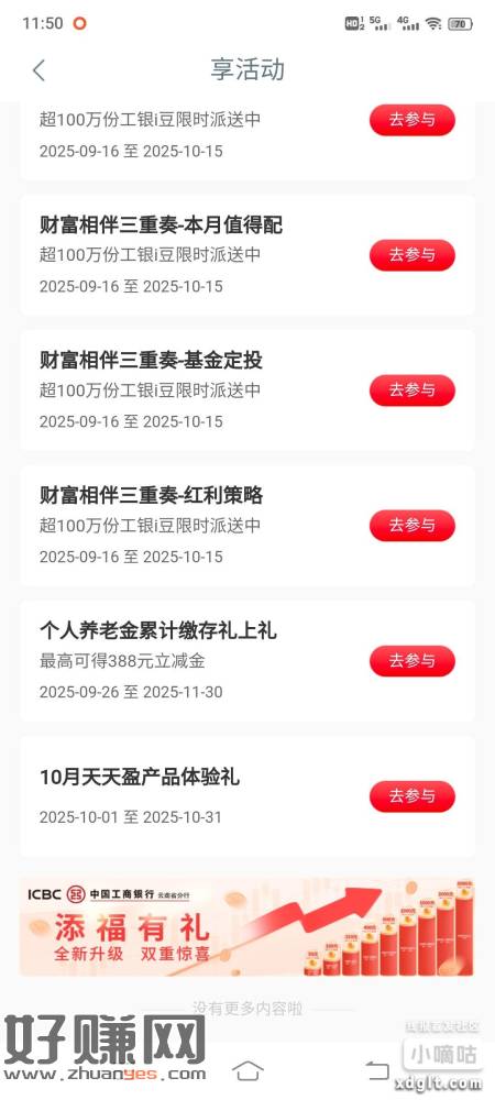 工行 任务中心 享活动 最后一个10月天天盈活动