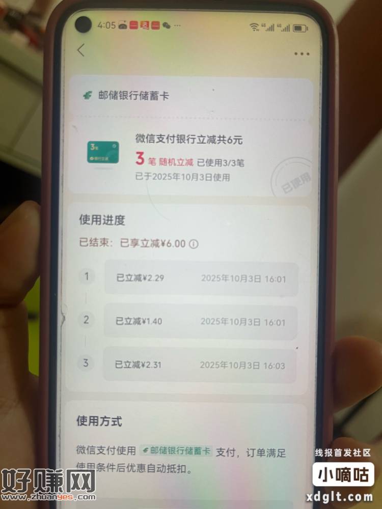vx支付右下角摇一摇有水,邮储领了6元立减金