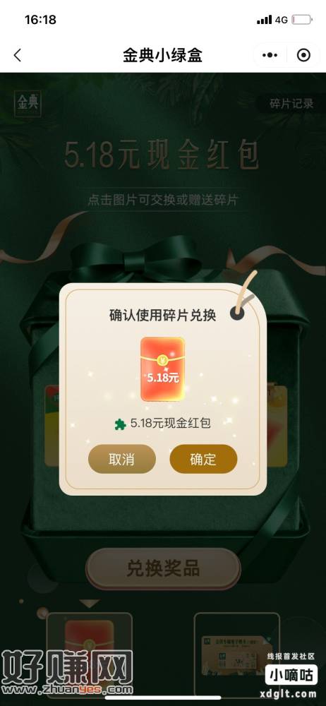 金典小程序开小绿盒有小水,两号互送碎片都集齐了兑了5.18,