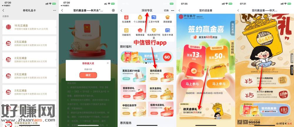 如图,中信银行app…城市专区深圳,拿铁计划,直接设置每月1号,扣款30,各种同意签约后,返回秒领取15元立减金,再返回银行首页搜索拿铁计划,找到这个计划终止即可