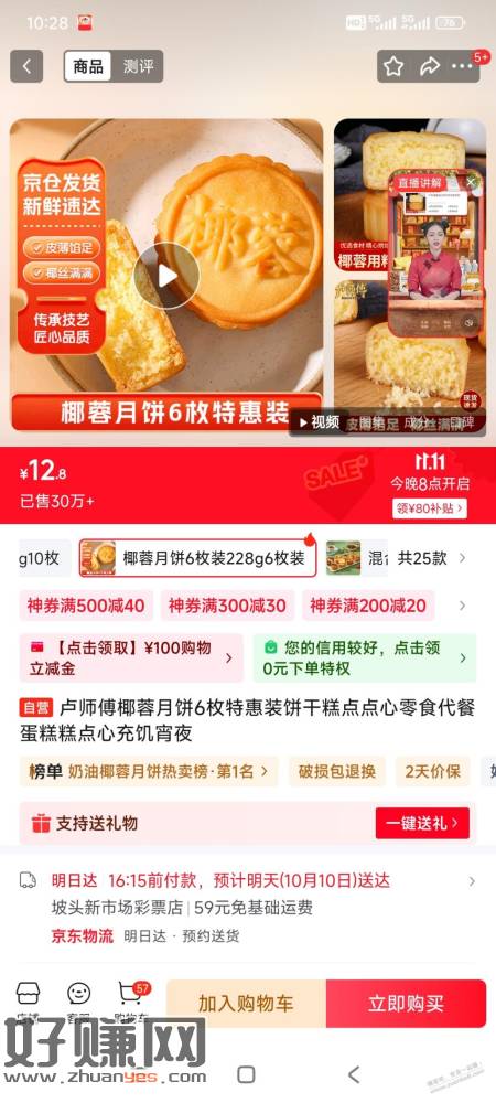 卢师傅椰蓉月饼6枚买一赠一,12枚12.8元
