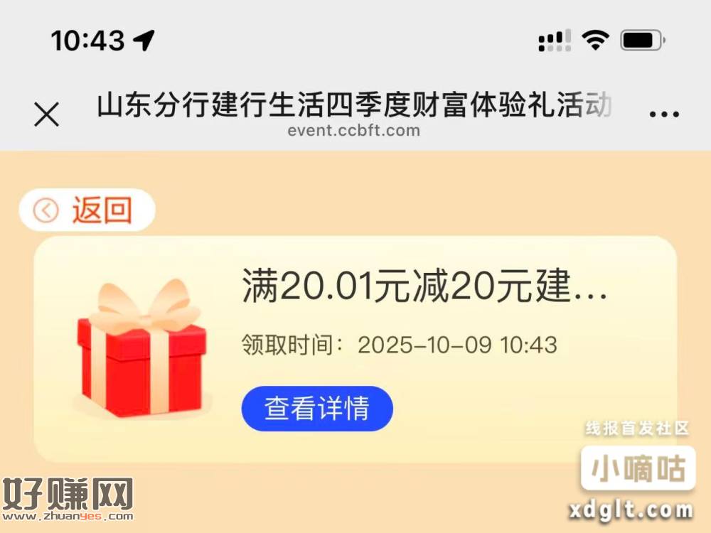 订位山东(除青岛),买100龙钱宝活期,领20建行生活卷,线