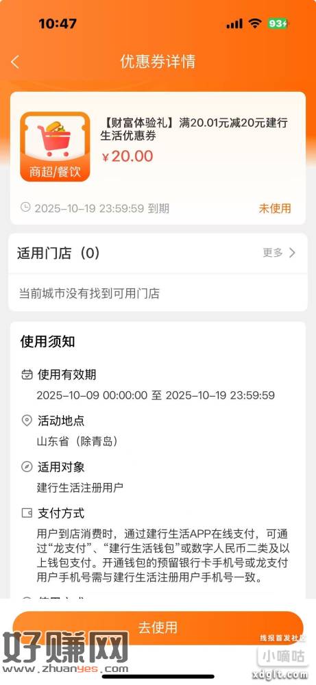 订位山东(除青岛),买100龙钱宝活期,领20建行生活卷,线下商超卷用得上的去