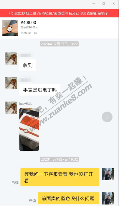 不过对方啥都没追究,直接自己换了个电池花了75元,顺利确认了。还回复说这手表我太喜欢了,自己蛮惊喜的。