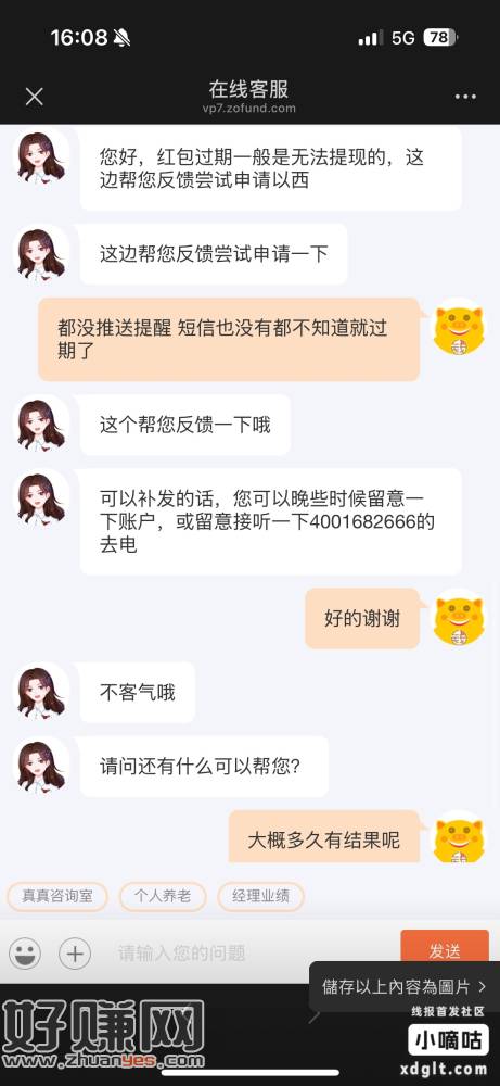 中欧财富之前领过10000体验金 体验结束红包没领过期的 去找客服补发