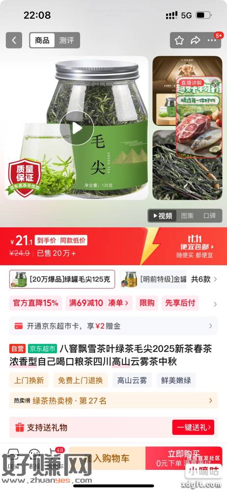 京东建行联合会员5元立减可以买这款茶叶,在不使用优惠券的情况