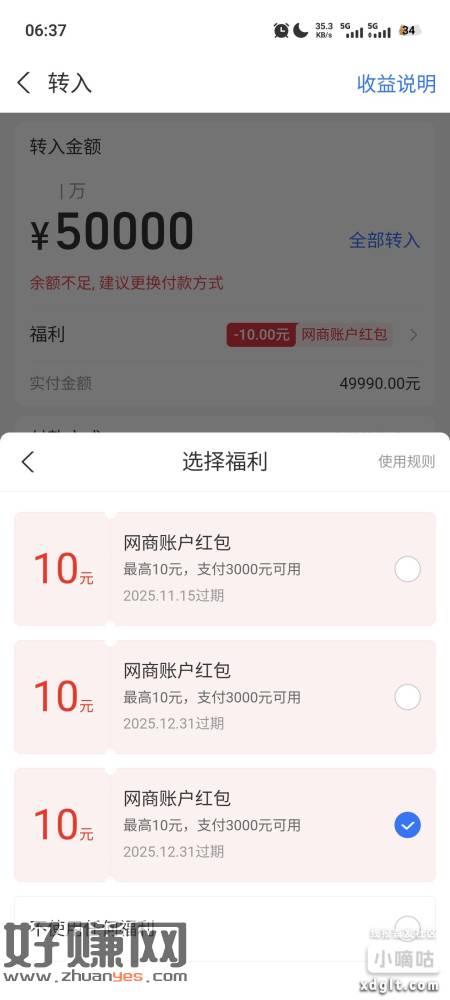 余利宝打开余额有的会出现10红包,然后打开卡包刷10余利宝红包,每天都刷一下,这个红包过期时间比较长,在去余额宝活动,抽攒钱红包,先充余利宝,然后再充余额宝,都是活期,有点利润,手头充足可以玩玩