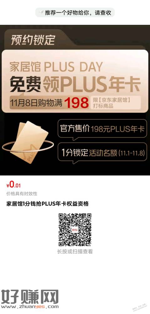 买家居送京东plus年卡