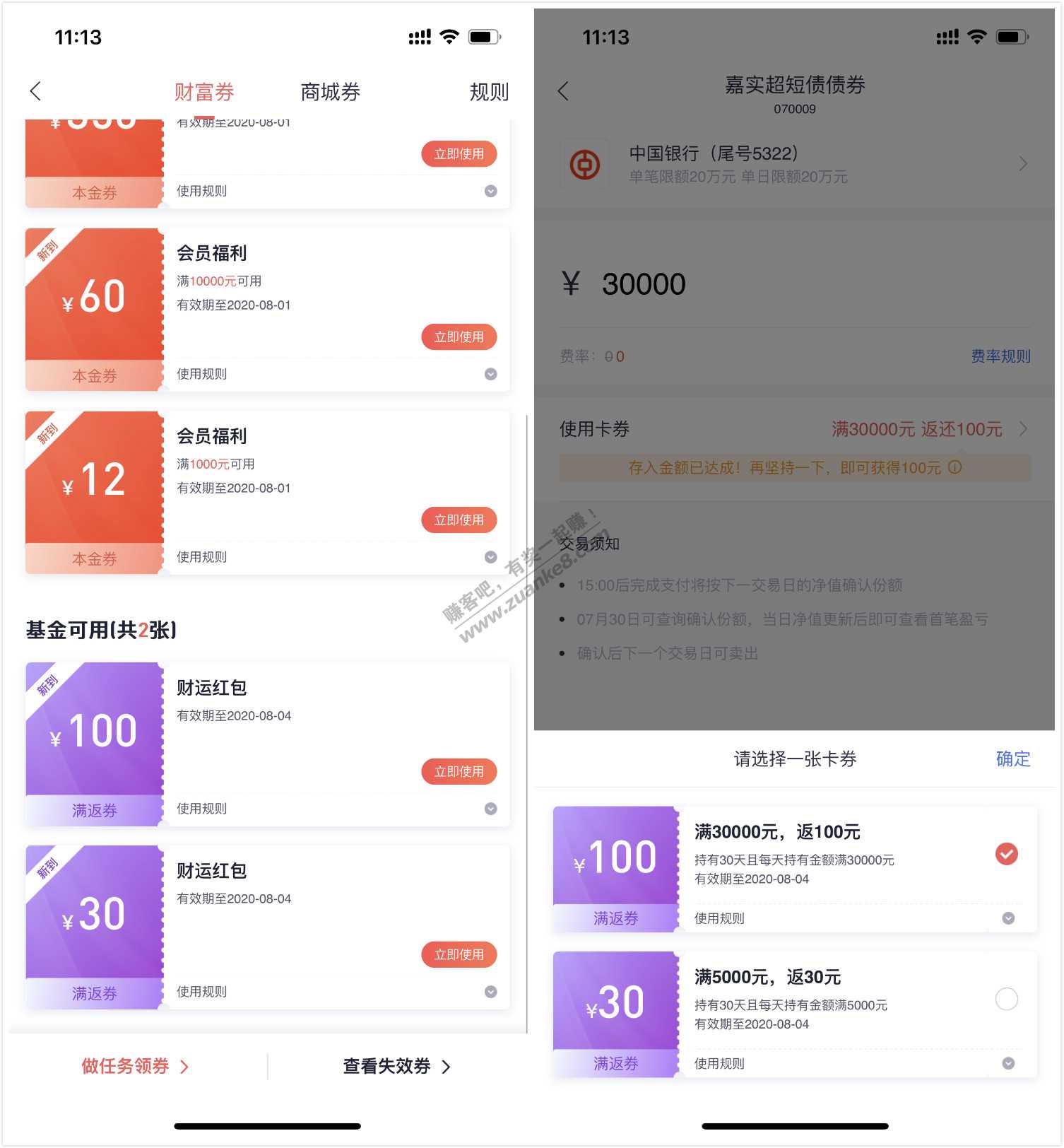 玖富送100和30的基金券可用于债基