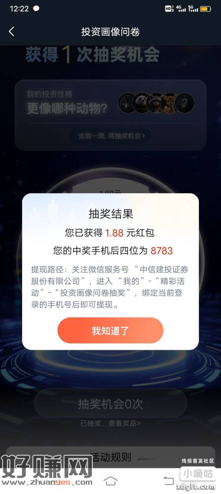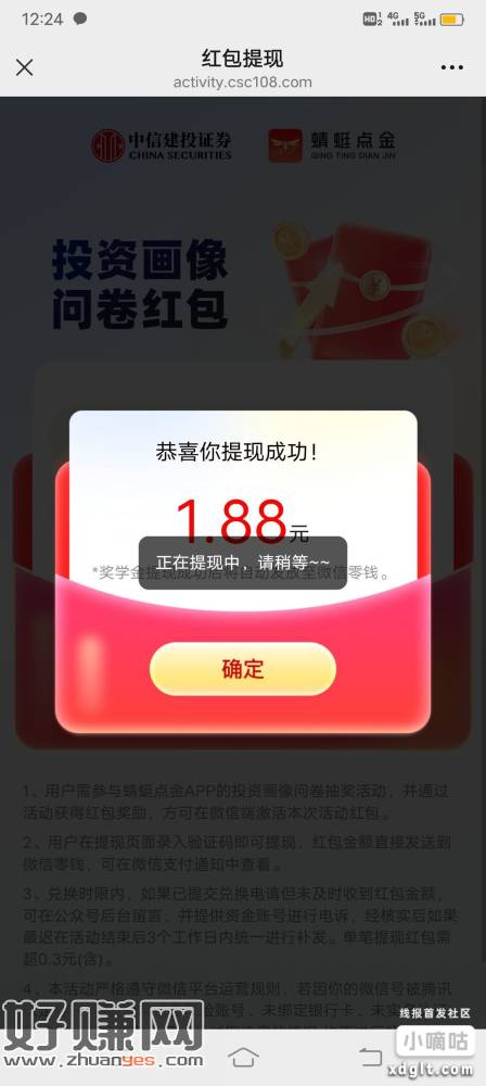 下载蜻蜓点金,开过中信建投证券的,点右上角口字行图片,找到你今天领红包了么,测试领红包,中了得1.88元