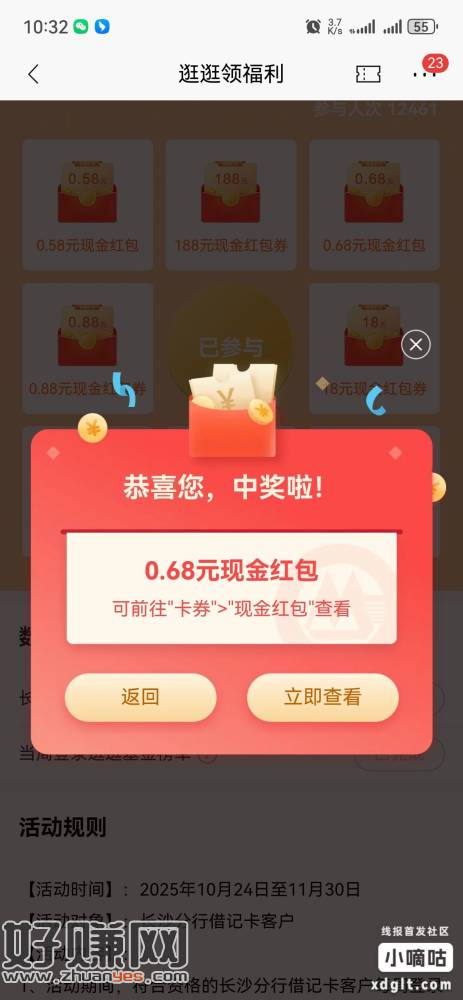 招商银行长沙分行城市专区活动,逛逛领福利,湖南老哥撸到反馈