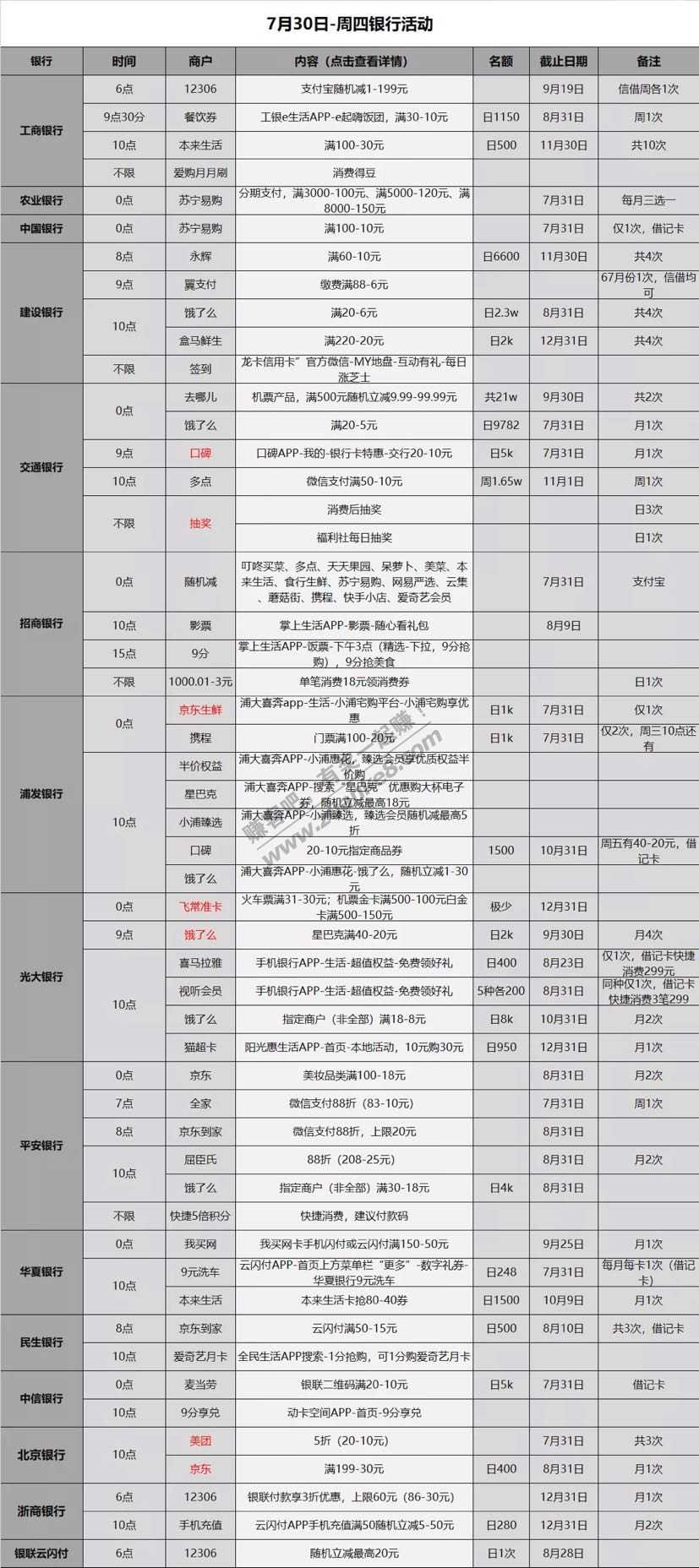 每日,在指定商户使用微信绑卡消费,可享满减优惠,每周各限1次,每日名额有限(7月31日截止)