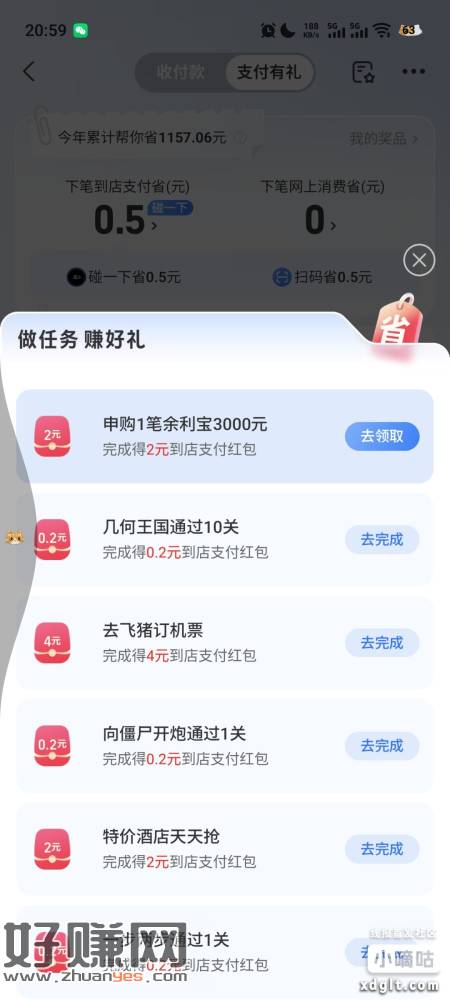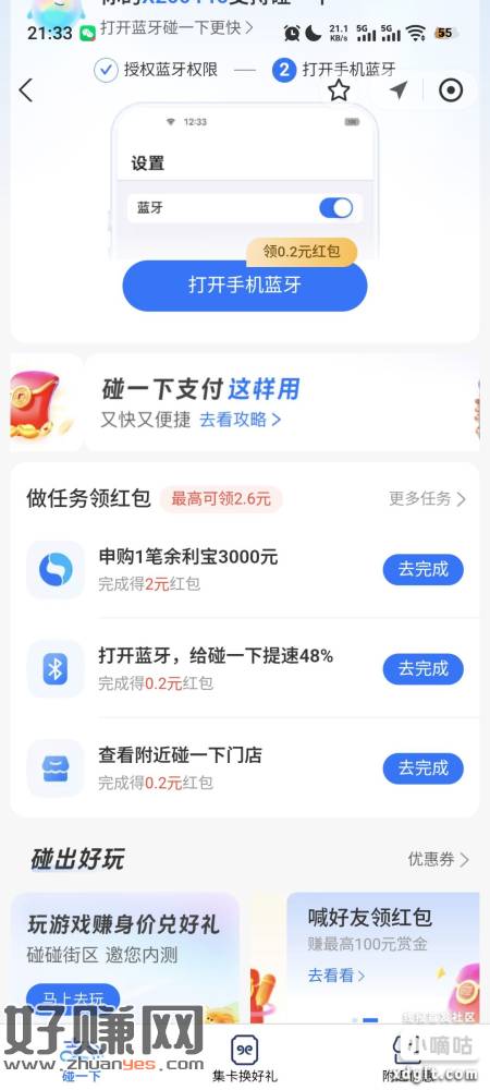 支付宝搜支付有礼,碰一下,转余利宝4毛有其他任务也可以做一下