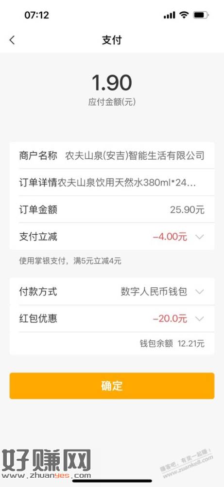 结合上个月的10元,去送水到府,领优惠券4元,买矿泉水24瓶,1.9元