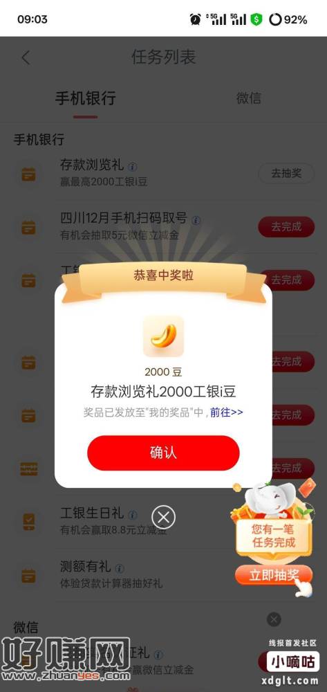 工行任务中心,测额有礼,存款浏览礼,享活动财富浏览3个浏览一共1万豆
