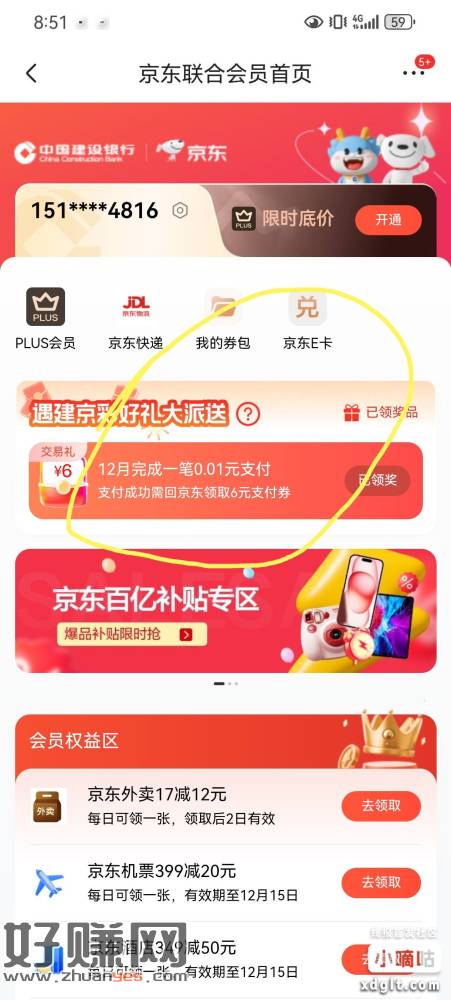 京东搜。建行联合会员