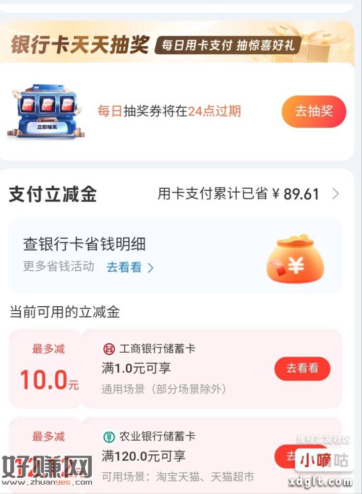 支付宝银行卡天天抽奖,能抽出各种银行立减金