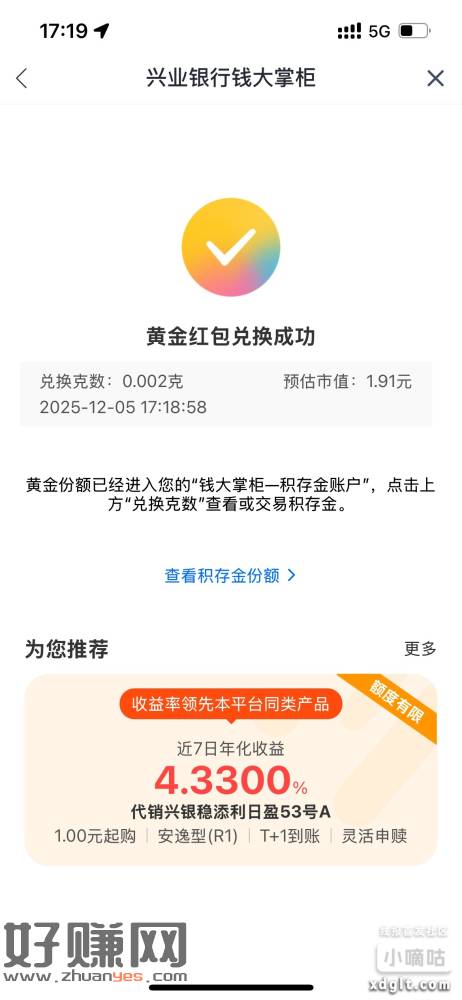 兴业银行热门活动要理财找兴业,签到有水2000微克黄金