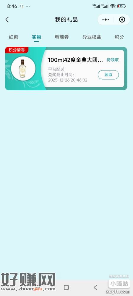 毛铺有水,刚刚中一瓶酒和两个红包,9积分抽奖那里