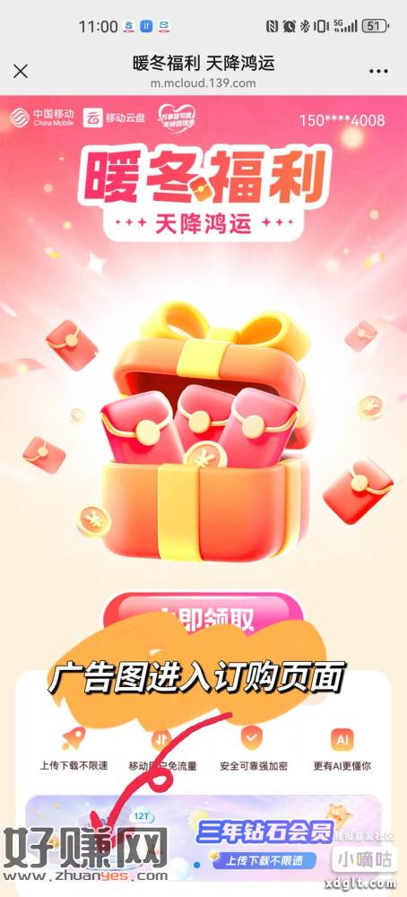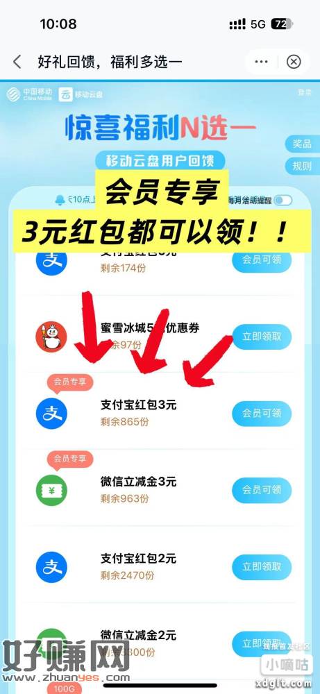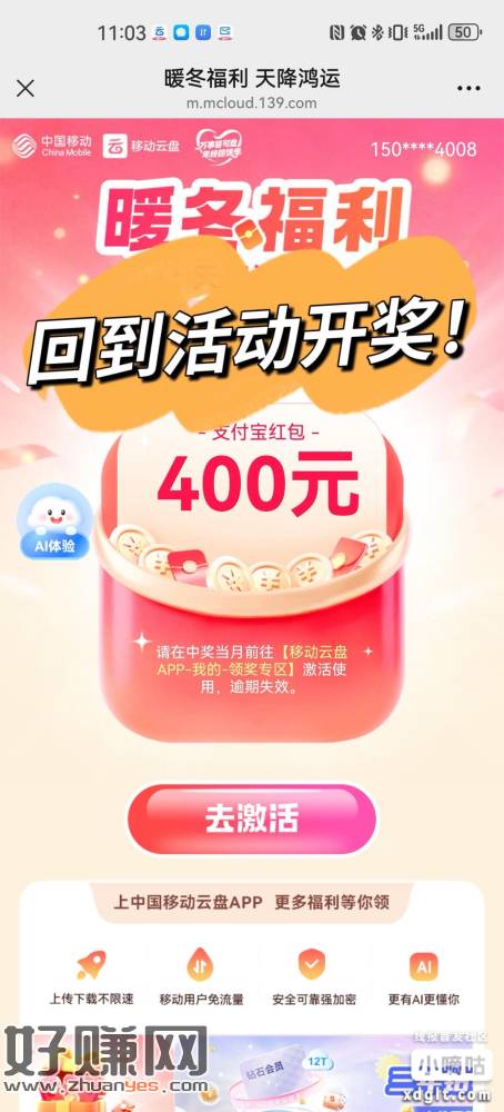 1️⃣ 到移动云盘-我的-活动中心-天降鸿运抽大奖