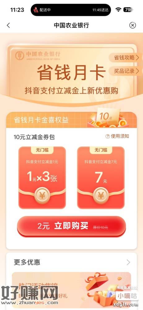 豆子界面里面横幅有两个抽奖活动+一个2元买抖音10元券3个一元,一个7元,可能是上海地区,大家试试。