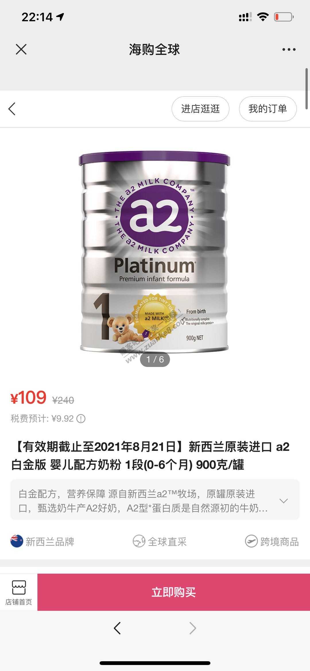 a2白金1段奶粉,有效期还有一年多,价格不到119