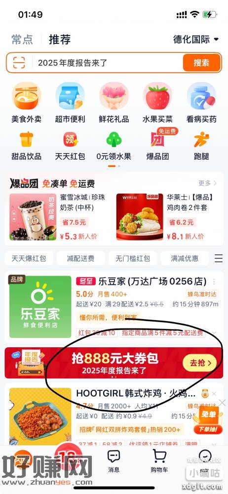 淘宝闪购首页轮播图抢888大券包年度报告,抽14元无门槛券