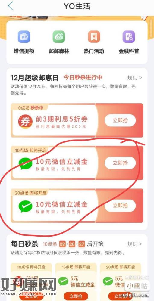 中邮钱包APP首页横幅,会员日10点积分抢10立减金