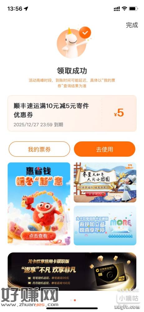 建行生活顺丰10-5还有