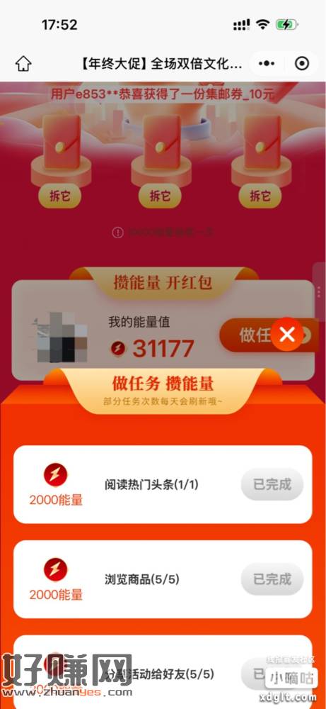 抽e咔,能量值都是浏览任务,分享好友的那个直接转发5次给小号