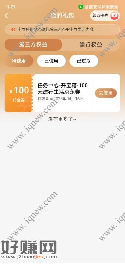 1.建行APP-我的-任务中心-1000积分开宝箱,[这个券也可以自己累积起来购买实物]