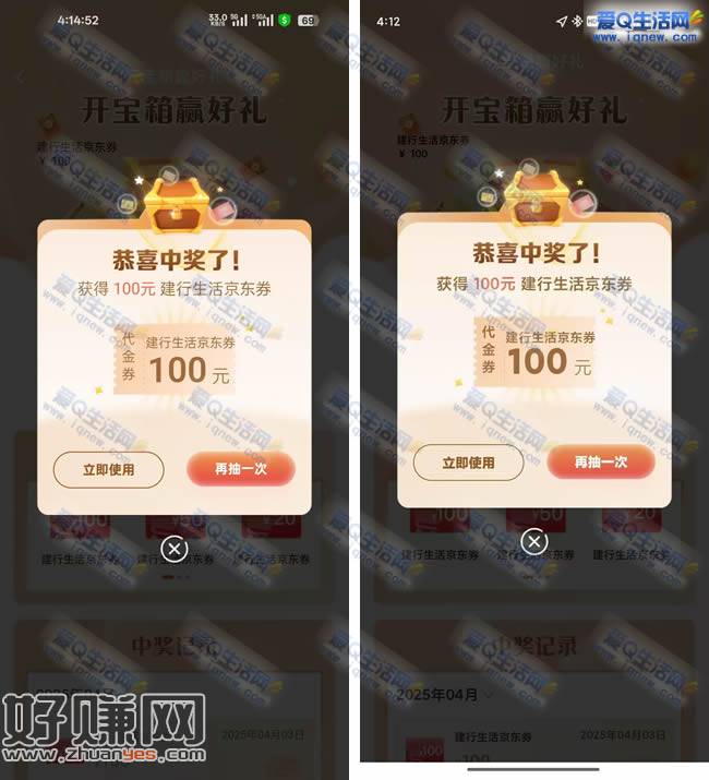 建行开宝箱抽奖活动,现在是只能抽建行生活京东券