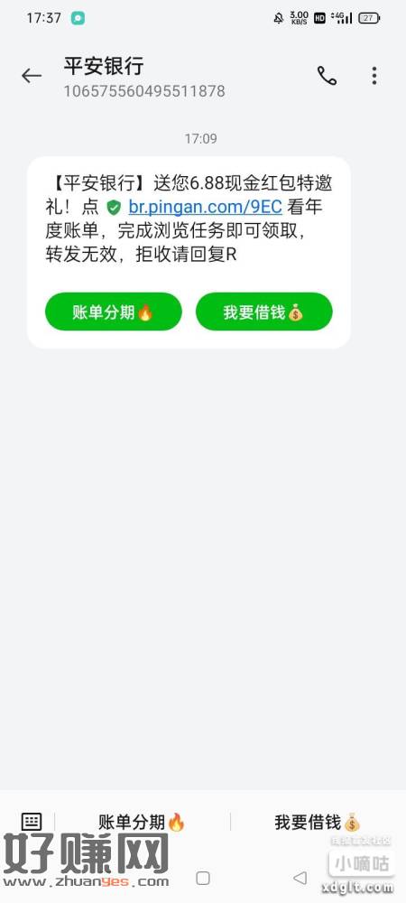 【平安银行】送您6.88现金红包特邀礼!点 br.pingan.com/9EC 看年度账单,完成浏览任务即可领取,转发无效,拒收请回复R
