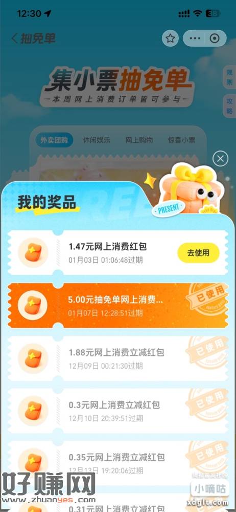 zfb 搜 集小票抽免单,每天可以有2个小票,发2个5块的微博红包,3张小票可以抽奖,看运气