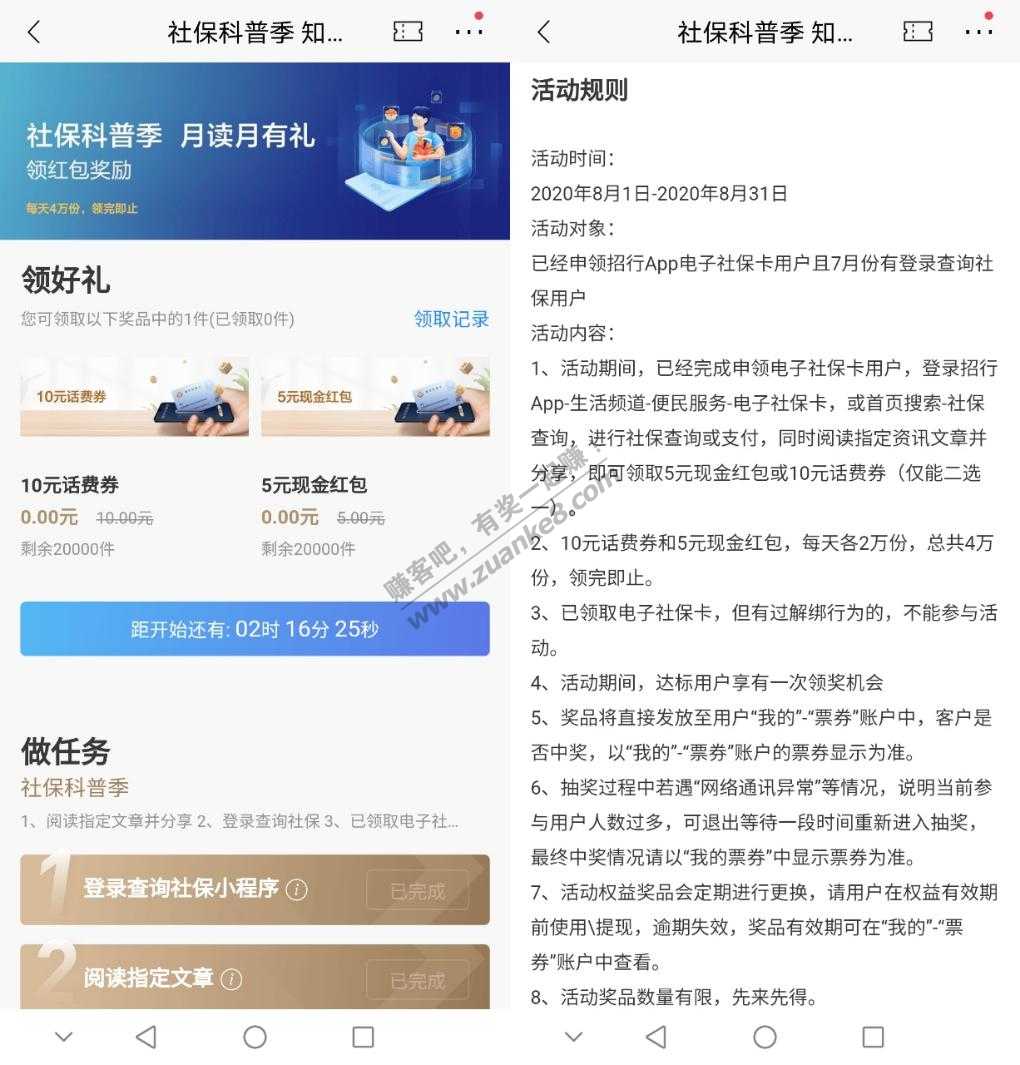 招行还有两个小时可以领取10元话费或5元现金