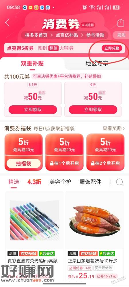 拼多多5折券又可兑了